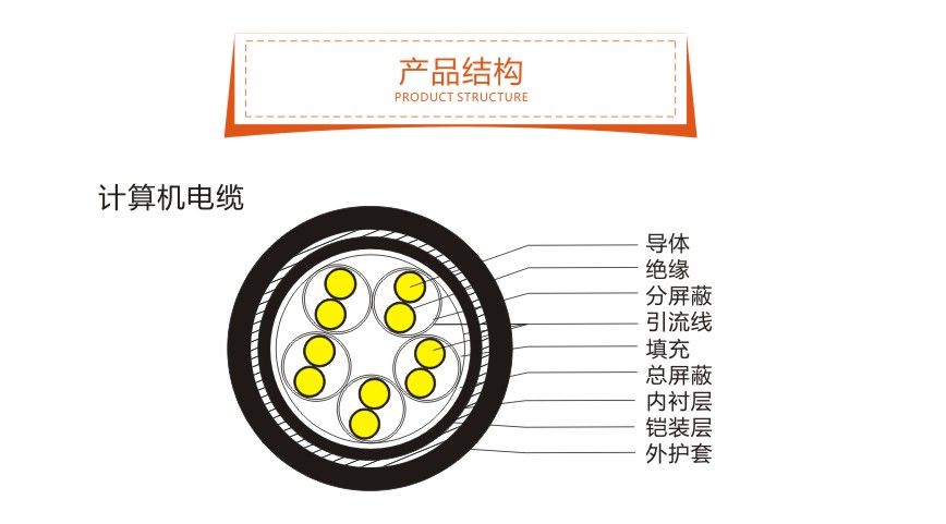 計算機電纜屬于電氣裝備用電纜,電氣裝備用電纜的結(jié)構(gòu)和組成材料最為復(fù)雜,根據(jù)使用溫度、工作環(huán)境的特殊要求,計算機電纜各結(jié)構(gòu)的組成材料種類繁多。