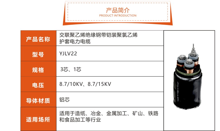 YJLV22 8.7/15KV 中壓鎧裝鋁電纜